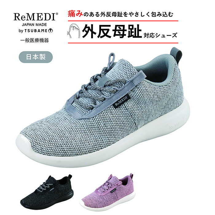 外反母趾対応シューズとは、防護パットを装着した新発想の一般医療機器シューズです。一般の外反母趾向けシューズとは異なり一般医療機器として厳しい医療審査基準をクリアしており痛みのある外反母趾を優しく包み込みます。